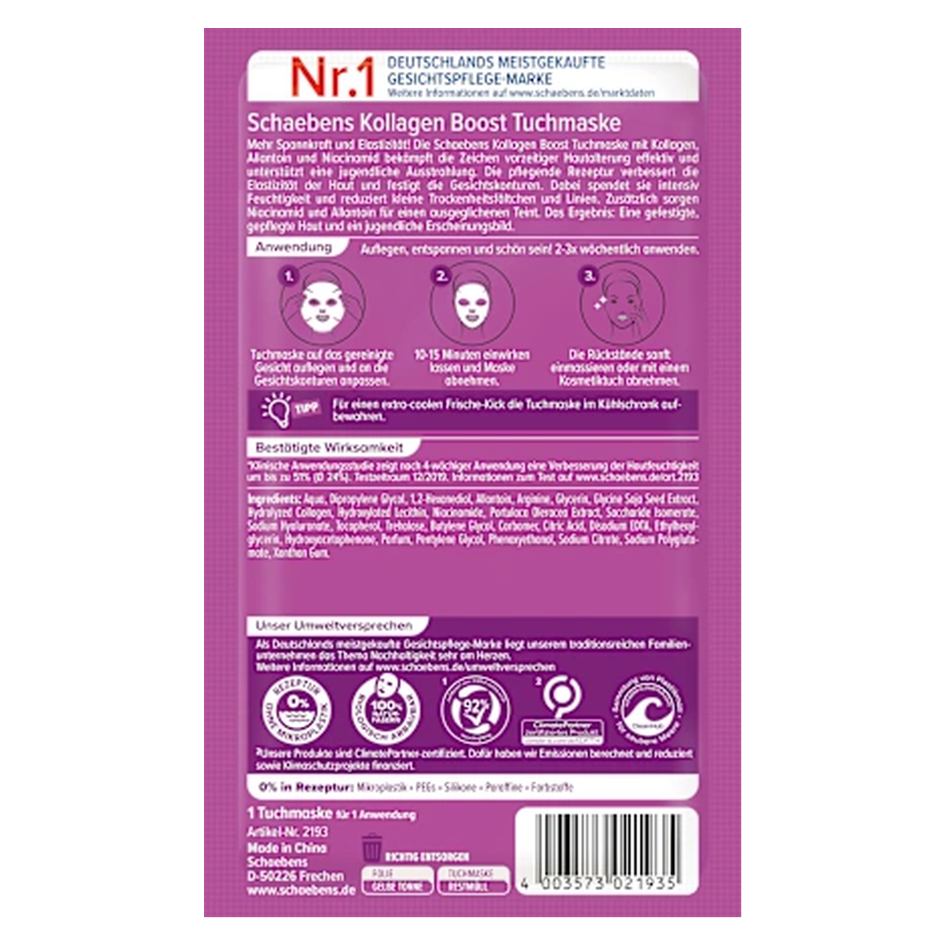 10 x Schaebens Gezichtsmasker Collageen Boost (doekmasker)