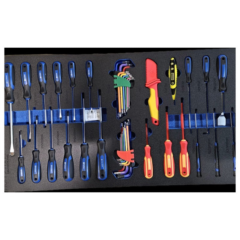 De wagen wordt volledig gemonteerd geleverd en is direct inzetbaar. Of het nu gaat om het opbergen van handgereedschap, elektrische tools of accessoires – met deze gereedschapswagen heb je alles binnen handbereik.